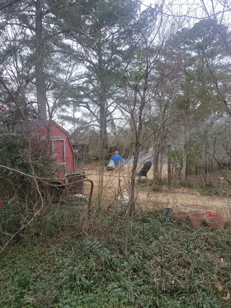 Yesterday, I go out to my backyard to recharge in between business calls.  I watch my black cats chase each other up the tree.  I look over and catch my neighbor in the glimpse of my eye.